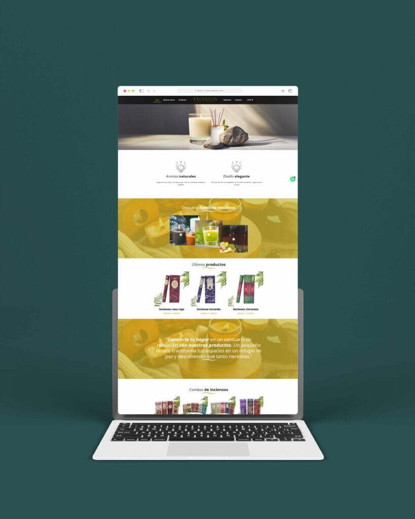 Desarrollo de sitio web para Encantos, empresa dedicada a la venta de productos de alta calidad, comprometidos con brindar experiencias sensoriales únicas a nuestros clientes.